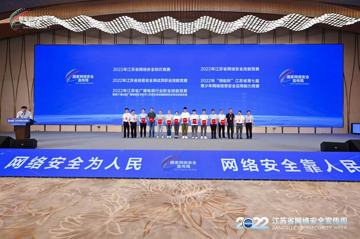 近日,由江苏省委网信办、江苏省教育厅联合主办的2022?/span>?/span>领航?/span>?/span>江苏省第七届青少年网络信息安全应用能力竞赛(高校组)决赛在南京国际博览中心落下帷幕。在9?/span>1日的决赛中,我院“提名者”网络安全战队崔智铭、王智哲、姚元勋三名同学在石春宏老师的指导下,荣获本次决赛第一名?/span>