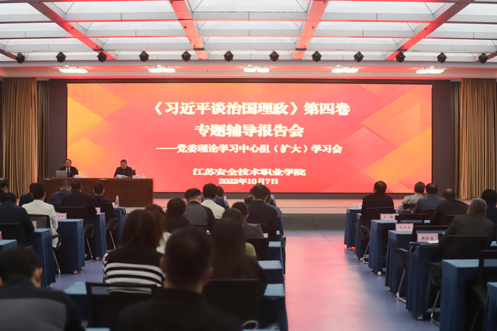 10?/span>7日,学院召开党委理论学习中心组(扩大)学习会。本次学习会邀请了徐州市委宣讲囀团省委讲师团成员,徐州工程学院马克思主义学院副院长周海航做《习近平谈治国理政》第四卷专题辅导报告。学院党委理论学习中心组成员、全体中层及以上干部、全体马克思主义学院教师、云龙校区全体辅导员参加学习,会议由党委副书记成伯君主持?/span>