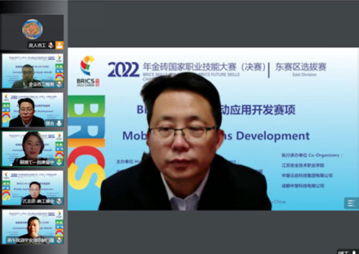 10?/span>10日上午,2022年金砖国家职业技能大赛“移动应用开发”赛项东赛区选拔赛在我院顺利开幕,副院长吉智出席并致辞?/span>36支参赛队的选手和专家及我院工作人员?/span>80余人参加了开幕式。开幕式由网络与信息安全学院院长黄健主持?/span>
