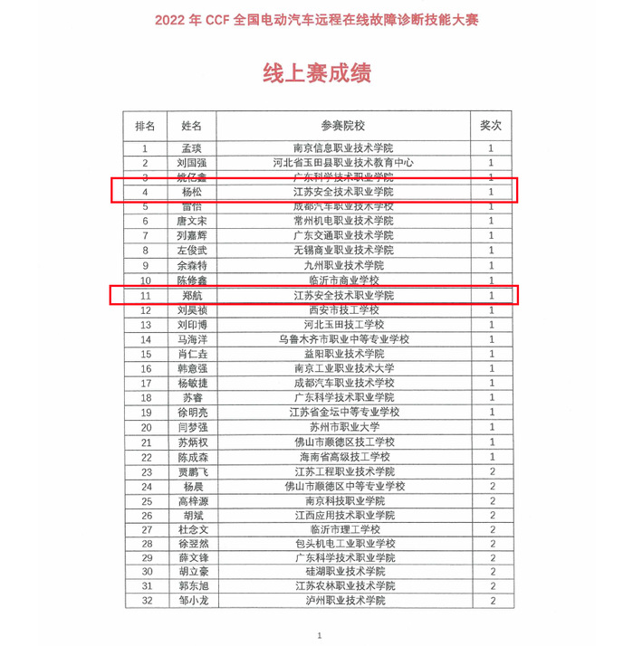 近日,交通与安全学院学生在第二届CCF全国电动汽车远程在线故障诊断技能大赛中获得一等奖两个,二等奖两个。其中郑航同学、杨松同学荣获一等奖;杨恒懿同学、胡铭凯同学荣获二等奖�