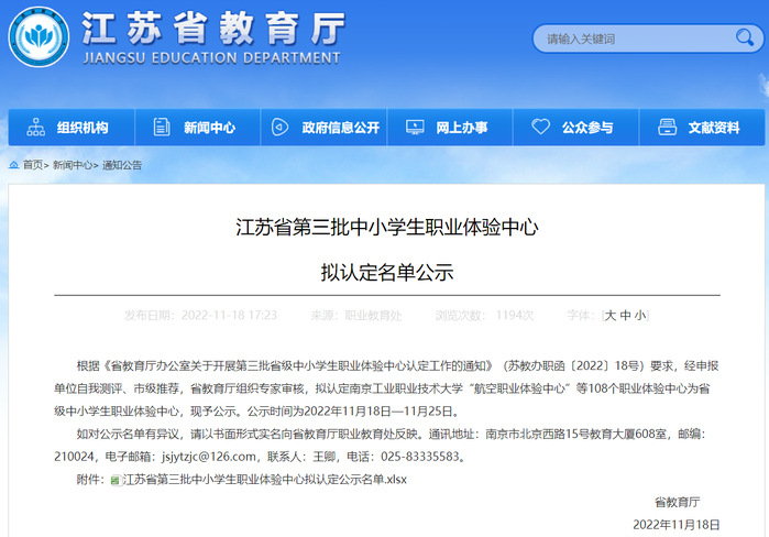 近日,江苏省教育厅发布江苏省第三批中小学生职业体验中心拟认定名单公示,我院申报的电梯安全职业体验中心成功获批�
