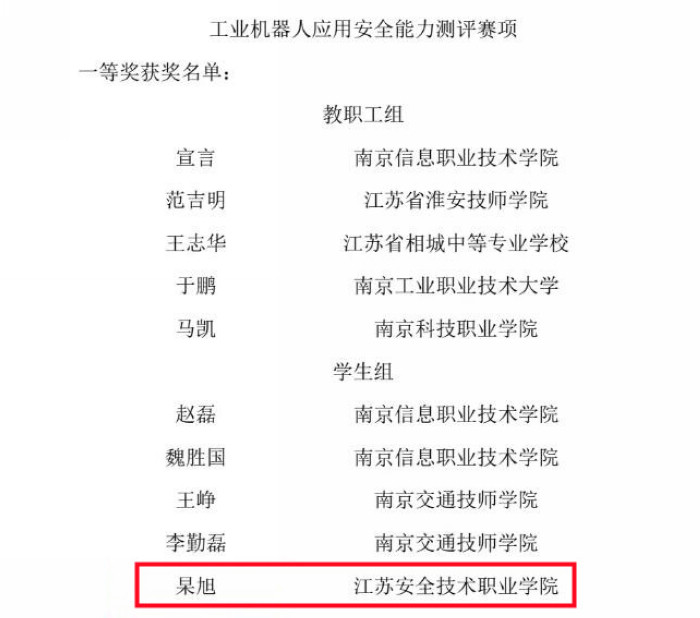 近日,在“江苏工匠”岗位练兵职业技能竞?span lang="EN-US" style="line-height:1.5em;">—?022年江苏省智能制造与建造安全能力测评竞赛上,电气工程学院师生荣?span lang="EN-US" style="line-height:1.5em;">1?span lang="EN-US" style="line-height:1.5em;">3银。方小明老师荣获工业机器人应用安全赛项教职工组二等奖,杲旭荣获学生组一等奖,刘若涵、梁羽辰荣获学生组二等奖?/span>