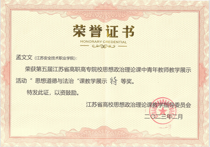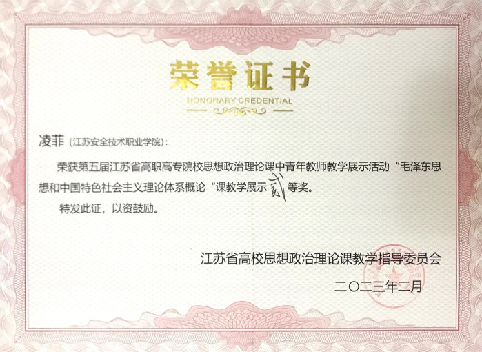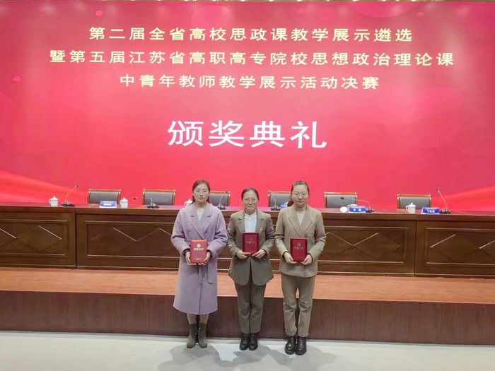 2?/span>12日,我院三位思政课教师在第二届全省高校思政课教学展示遴选暨第五届江苏省高职高专院校思想政治理论课中青年教师教学展示活动决赛中喜获佳绩。孟文文老师获《思想道德与法治》组特等奖,王婷老师获《习近平新时代中国特色社会主义思想概论》组一等奖,凌菲老师获《毛泽东思想和中国特色社会主义理论体系概论》组二等奖,实现该比赛项目新突破?/span>