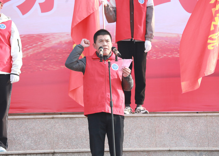 团总支书记代表靖中华、青年志愿者代表孙庆钧作表态发言。他们表示,要努力学习雷锋的榜样精神,树立远大志向,忠于职守、立足本职、兢兢业业、谦虚谨慎、不骄不躁、艰苦奋斗,学习雷锋的优秀品质、奉献精神和集体主义精神�