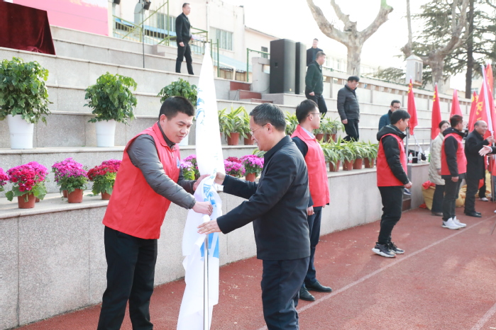 仪式上,各二级学院党总支书记分别为团总支书记授青年志愿者旗。接过旗帜,就接过了雷锋同志的意志。各团总支书坚定的眼神表达出他们带领青年志愿者将雷锋精神、志愿服务精神内化于心、外化于行,更好服务人民、服务社会的决心�