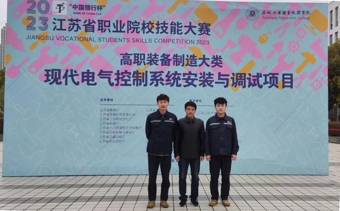 在现代电气控制系统安装与调试赛项中,由曾现峰、赵慧娟老师指导的刘明垚、赵康彭同学荣获二等奖�