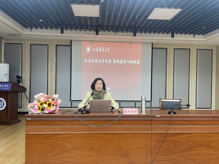 为贯彻落实教育部关于学生心理问题防治的相关文件精神,及省教育厅“大学生心理健康促进行动”重点项目,结合学院上半年重点工作,3�22日,江苏师范大学欧阳文珍教授为我院学生工作人员开展春季心理健康工作专题讲座。学生工作处相关负责同志、各二级学院党总支副书记、辅导员、大学生心理健康教育中心全体人员参加�
