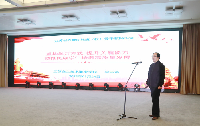 3�24日,全省民族班(校)骨干教师培训走进我院,我院党委委员、宣传部部长李志浩在会上致辞并代表学院作主题交流发言,介绍民族班办学经验�