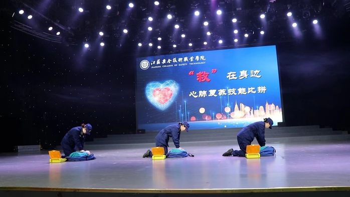 ?“救”在身边心肺复苏技能展示环节中,观察环境、判断意识、胸外按压、人工呼吸、评估呼吸、复苏后护理,并配合AED设备使用,我院学生动作准确迅速、整齐划一,充分地体现了专业能力。在矿井灾害应急救援技能操作环节中,我院学生通过规范穿戴应急设备、进行设备安全自检、创伤包扎等环节展现出应急救援专业教育成果,表现出了高水平的专业素养?/span>