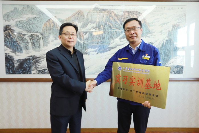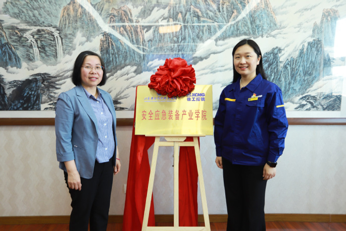李桂萍和张丽娜共同为“安全应急装备产业学院”揭牌。吉智代表学院向徐工集团挖掘机械事业部授 “实习实训基地”牌�