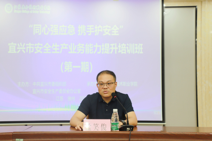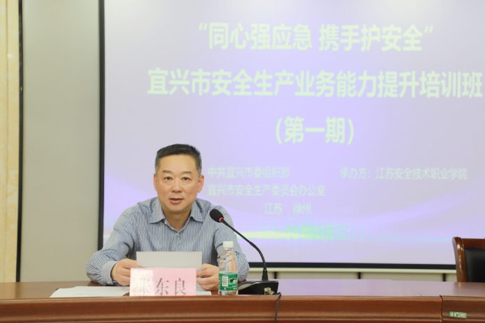 5�15日,�同心强应� 携手护安�� 宜兴市安全生产业务能力提升培训班 (第一期)在我校举行。学院党委书记张东良出席开班式并致辞,宜兴市应急管理局局长孟笑俊作动员讲话�
