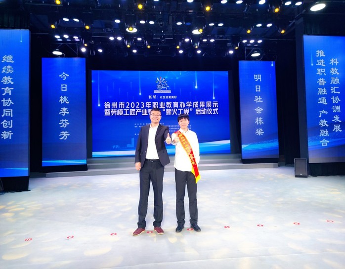 5�22日,由徐州市教育局、徐州市总工会主办,2023年职业教育办学成果展示暨劳模工匠产业导师�薪火工程�启动仪式在江苏模特艺术学院举办,由云计算竞赛团队孙中廷、袁思维老师指导的我院网络与信息安全学院云计算技术应用专业学生陈硕被聘为徐州市首批职业院��未来工匠��