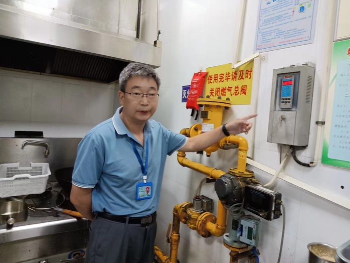 任国兴一行对食品、饮用水、用气、用电、消防、治安等方面的工作进行了深入细致的检查。重点检查了厨房燃气管道、燃气泄漏感应及报警装置、切断阀、燃气炉灶、消防烟雾报警器等设施设备运行情况,详细了解了各食堂的燃气安全管理情况,现场了解消防逃生通道、安全出口是否畅通等细节,并针对燃气安全精细化管理、硬件设施改善等方面提出了明确整改要求�