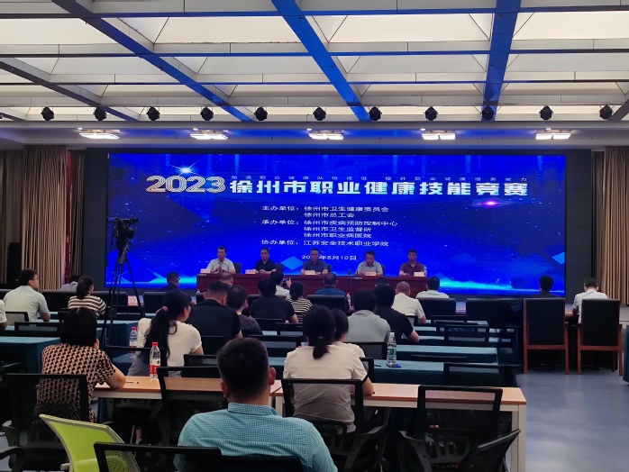 为加强徐州市职业健康人才队伍建设,进一步提升全市职业健康技术服务能力和水平?/span>8?/span>10日,徐州市职业健康技能竞赛在我院云龙校区隆重举行。市卫健委副主任王凯、市总工会副主席王建民、市卫健委副主任杨洪涛及各县(市、区)分管领导和相关负责同志出席了竞赛?