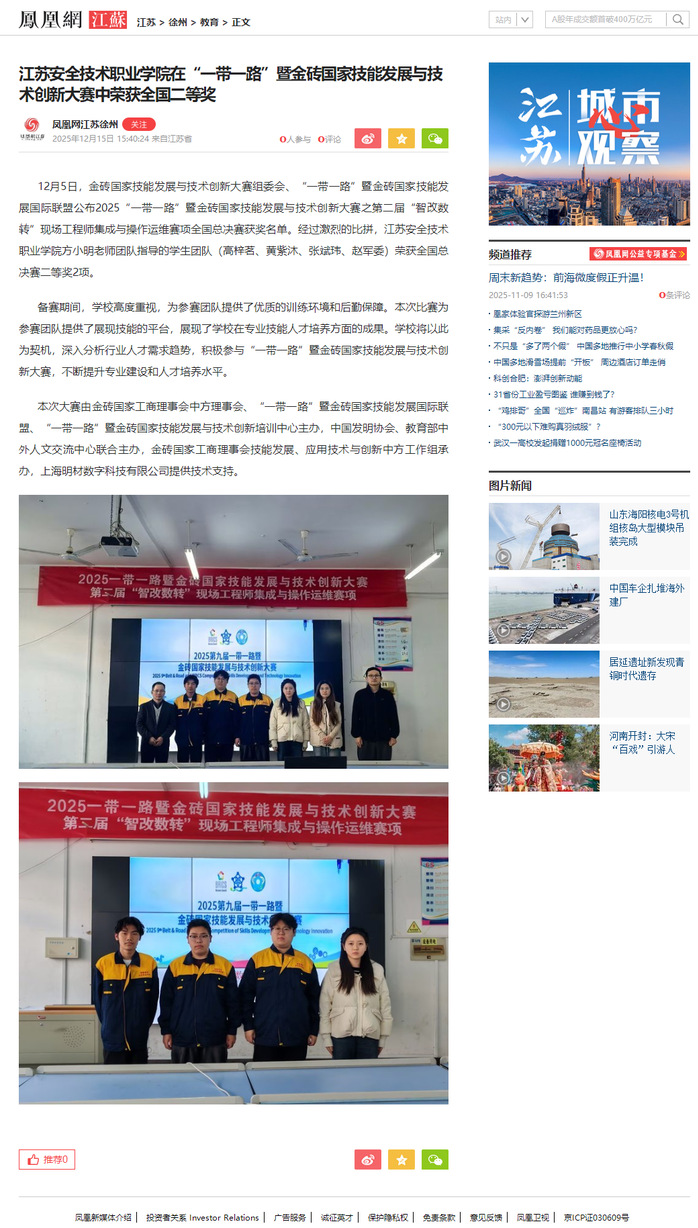 凤凰网江苏:吃瓜网站 在“一带一路”暨金砖国家技能发展与技术创新大赛中荣获全国二等奖