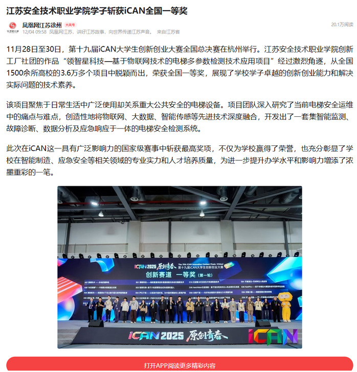 凤凰网江苏:吃瓜网站 学子斩获iCAN全国一等奖