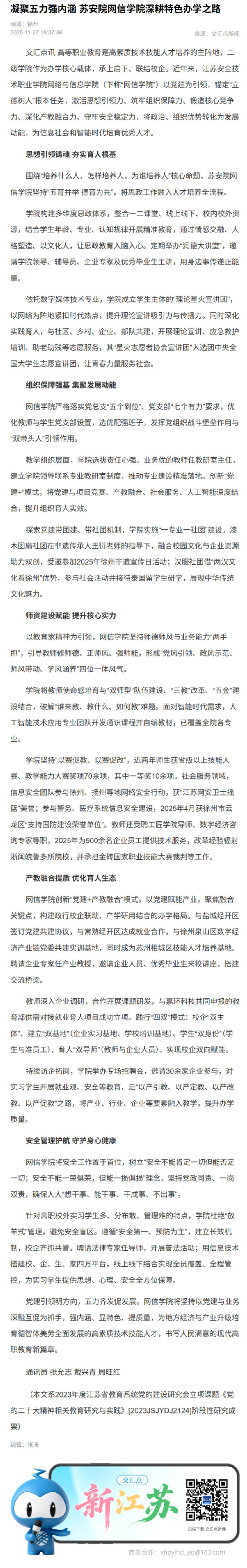 交汇点:凝聚五力强内涵 苏安院网信学院深耕特色办学之路