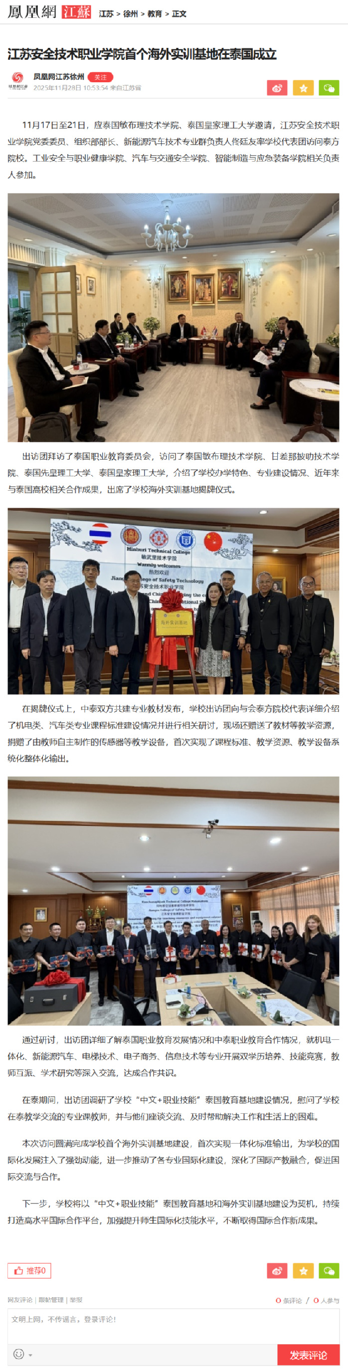 凤凰网江苏:吃瓜网站 首个海外实训基地在泰国成立