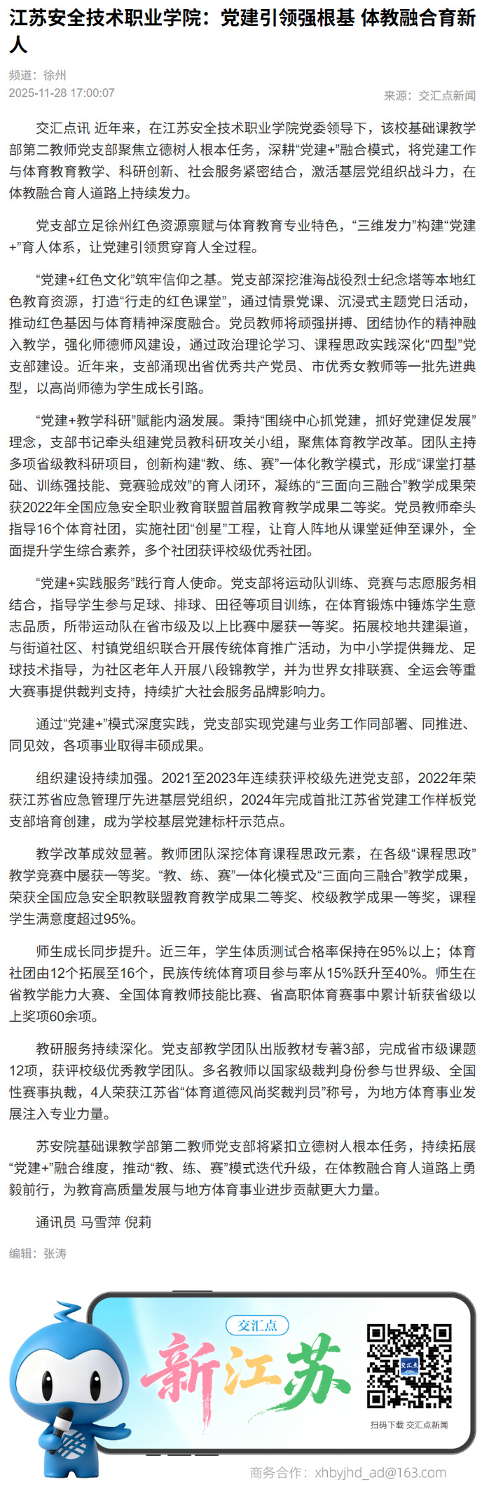 交汇点:吃瓜网站 :党建引领强根基 体教融合育新人
