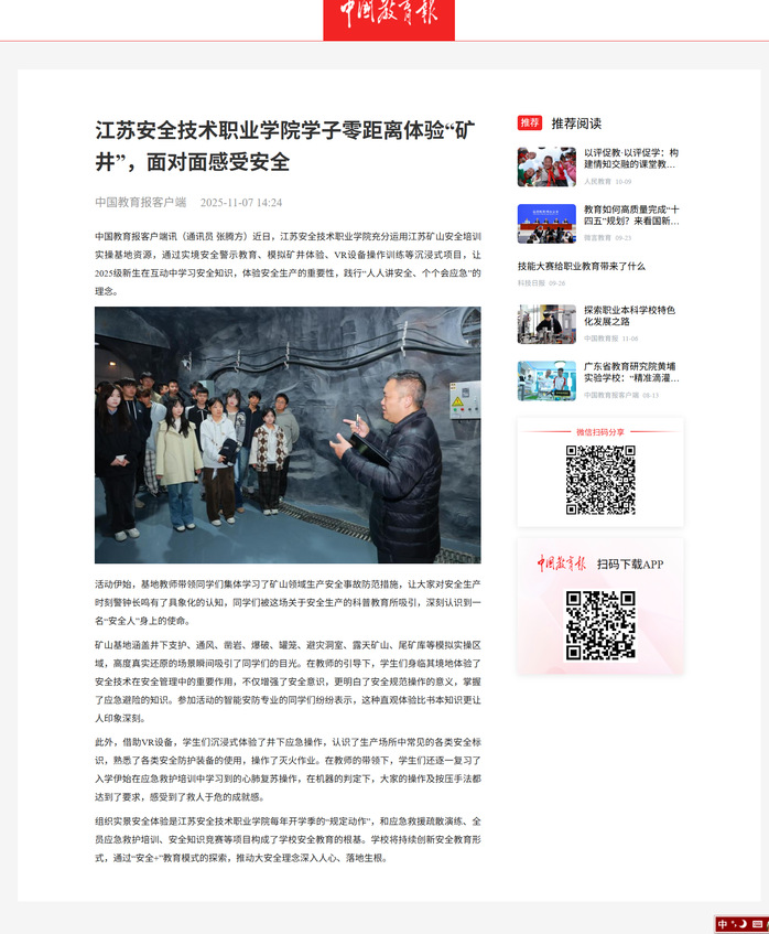 中国教育报客户端:吃瓜网站 学子零距离体验“矿井”,面对面感受安全