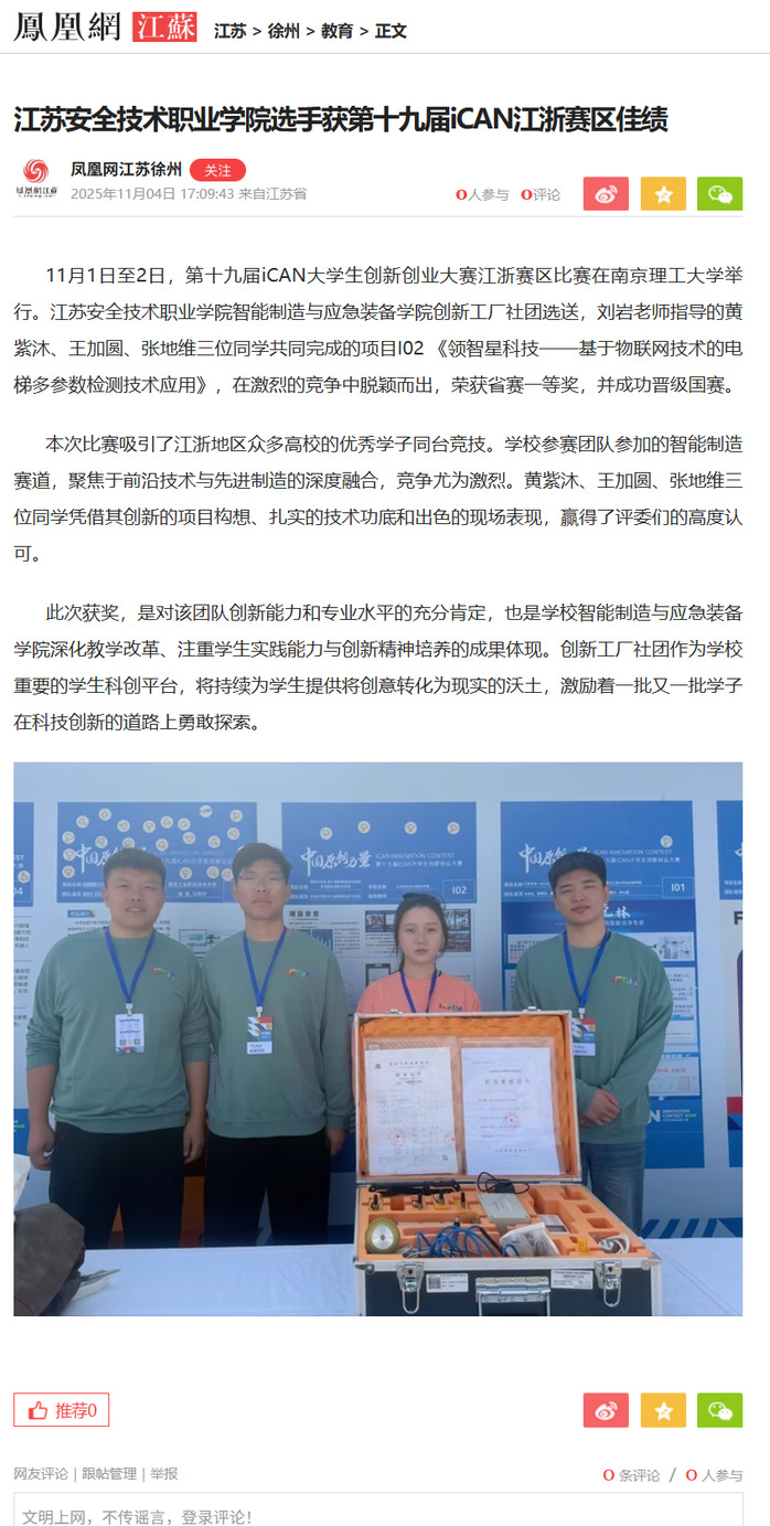 凤凰网江苏:吃瓜网站 选手获第十九届iCAN江浙赛区佳绩