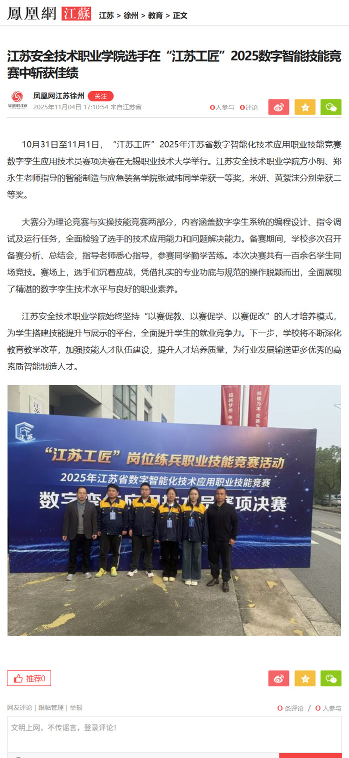 凤凰网江苏:吃瓜网站 选手在“江苏工匠”2025数字智能技能竞赛中斩获佳绩