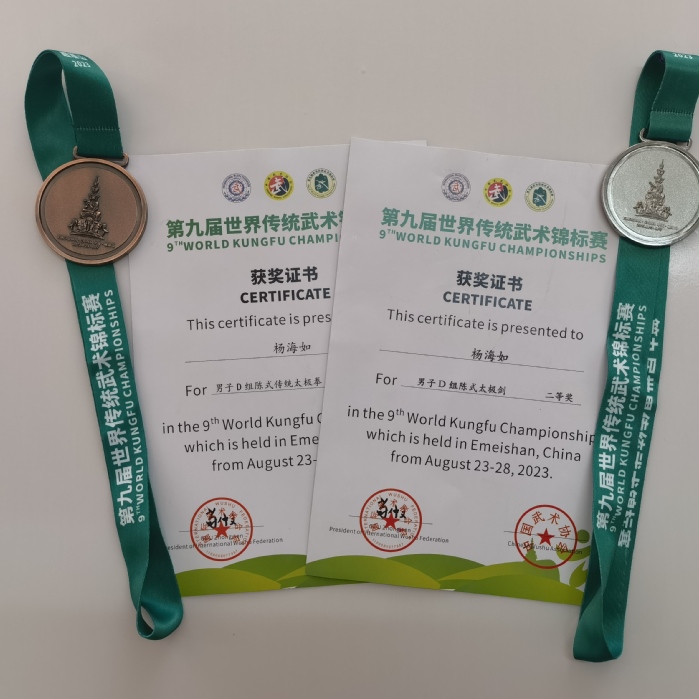 8�25日,第九届世界传统武术锦标赛在四川省峨眉山市开赛。本次比赛以“慧定峨眉•武动世界”为主题,由国际武术联合会、中国武术协会主办,共有53个国家和地区�6649名运动员和教练员参加。我院杨海如老师通过各级选拔赛,代表江苏省队参赛,以精湛的技术和扎实的功底,荣获陈式太极剑二等奖、陈式传统太极拳三等奖�