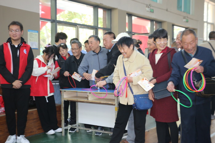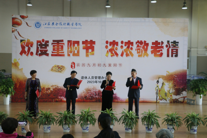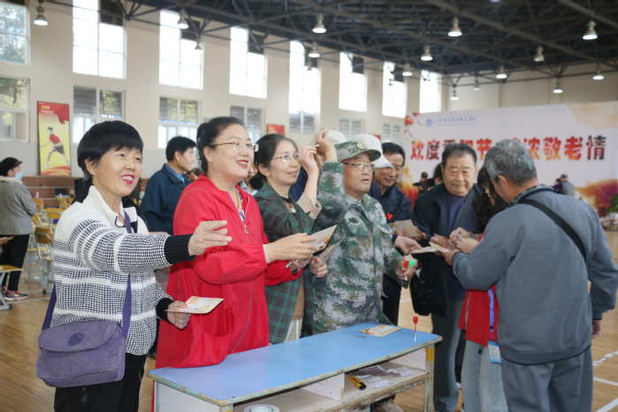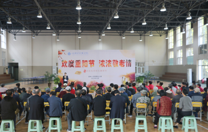 为庆祝重阳节,弘扬中华民族尊老敬老爱老的传统美德�10�22日,学院在贾汪校区举办了以“欢度重阳节,浓浓敬老情”为主题的庆祝活动。百余名退休老同志欢聚一堂,趣味游园,品尝美食,共度重阳佳节。学院党委委员、工会主席薛莲参加了本次活动�