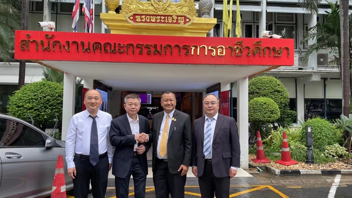 魏勇一行拜访了泰国职业教育委员会,访问了泰国乌隆他尼技术学陀敏布里技术学院,并同泰国乌隆他尼技术学院签署了校际合作备忘录。访问期间还走访了长城汽车罗勇园区,并和长城汽车初步达成合作协议�
