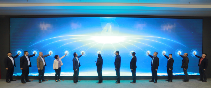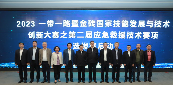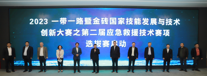 启动仪式上,与会领导共触屏幕启动?/span>2023 一带一路暨金砖国家技能发展与技术创新大赛之第二届应急救援技术赛项选拔赛”?/span>
