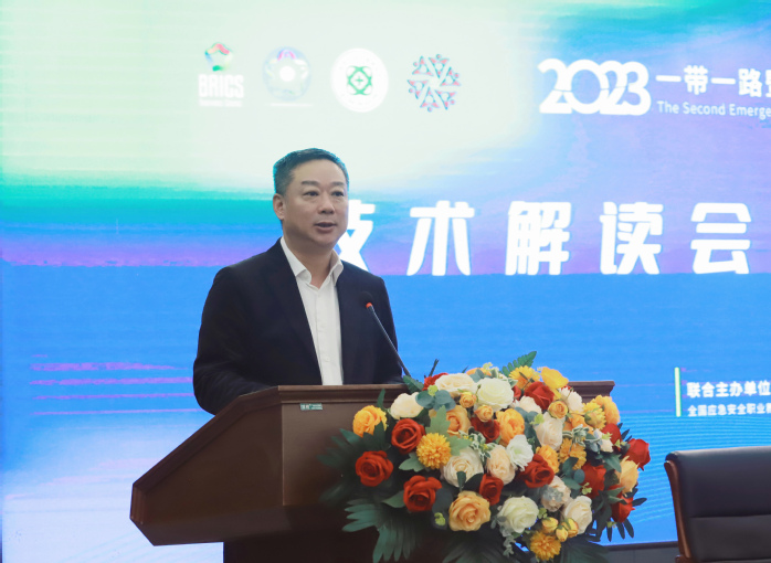 中国职业安全健康协会党委委员、副理事长、赛事总指导杨玉洲致辞。杨玉洲指出,希望能够通过金砖大赛的“窗口”作用吸引国内外优秀资源共同参与到赛事组织、实施当中,加快推动应急产业各领域人才培养、科技创新和成果转化,为国家应急体系构建和应急产业升级提供人力资源保障,培育经济增长新动能,助推中国标准“走出去”?/span>