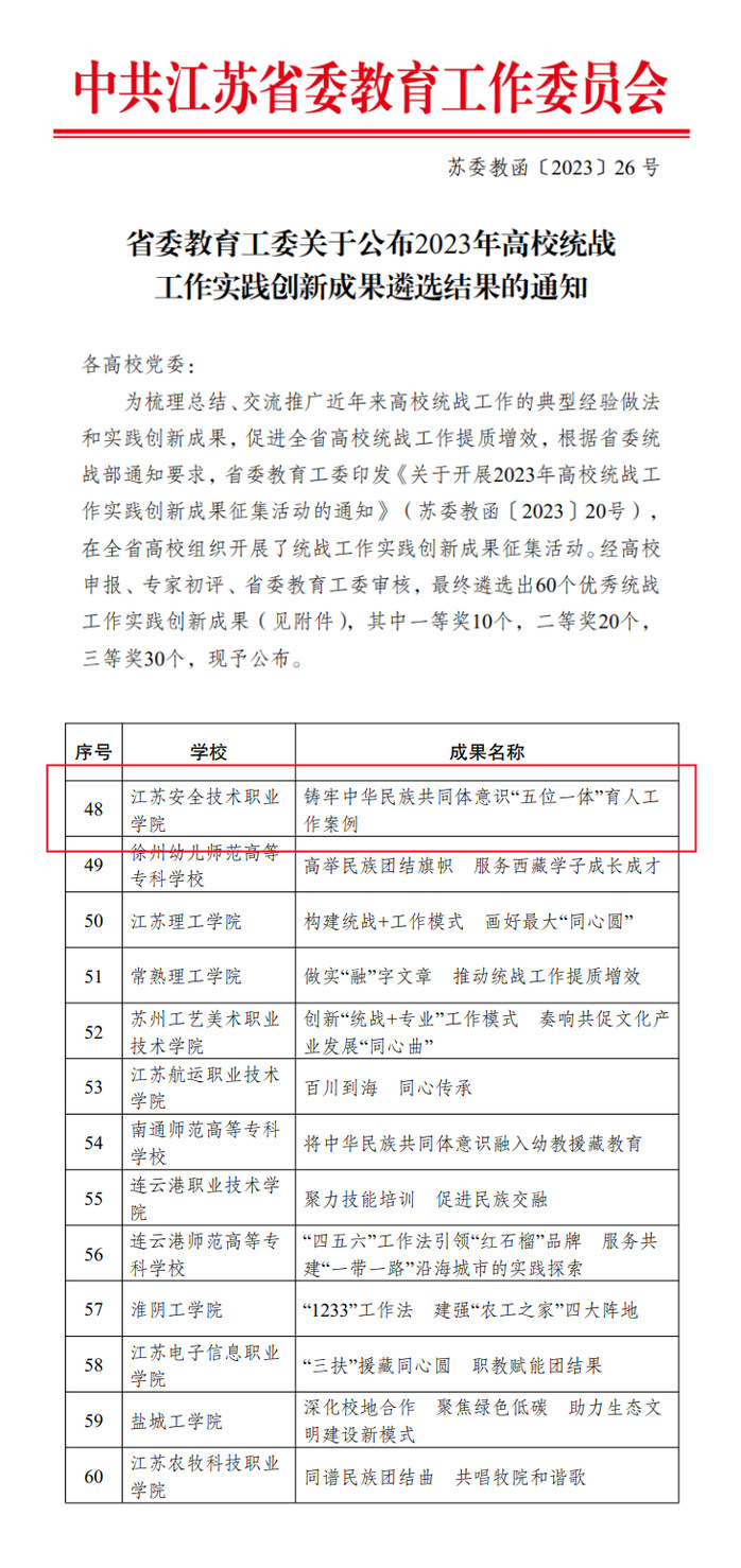 近日,省委教育工委公�2023年高校统战工作实践创新成果遴选结果,我院《铸牢中华民族共同体意识“五位一体”育人工作案例》获三等奖�