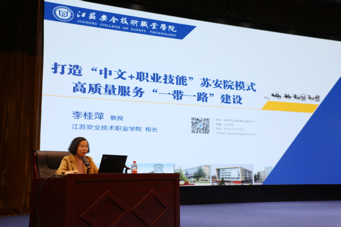 活动上,李桂萍院长应邀担任“丝路华语”国际汉语教学职业能力大赛决赛的评委,并作题为《打造“中�+职业技能”苏安院模式,高质量服务“一带一路”建设》主旨报告。李桂萍表示,学院以建设中国特色文化国际传播教育基地和“中�+职业技能”海外培训中心为契机,通过特色课程建设、特色基地建设和特色专业输出等路径打造出“汉语学�+文化推介+技能培训”苏安院模式。她指出,学院依托专业优势和师资优势,结合长城汽车等“走出去”企业全球发展化战略,与“一带一路”共建国家和地区优质院校合作,按需定制,培养“中�+职业技能”本土化技术技能人才。她谈到,“中�+职业技能”教育需要兄弟院校抱团出海,根据当地产业供需关系,结合“走出去”企业发展要求,结合各自优势,输出符合本土化需求和具有国际影响力的专业标准、课程标准、教学资源,共享中国职业教育模式,打造中国职教国际品牌�
