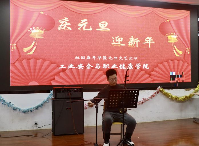2023�12�28日,工业安全与职业健康学院举办“迎新春庆元旦”文艺汇演,汇演中节目丰富多彩,涵盖了舞蹈、歌曲、武术、游戏、话剧、相声、器乐等内容,每一个节目都充满创新精神和艺术才华,给观众带来了无与伦比的视听盛宴�