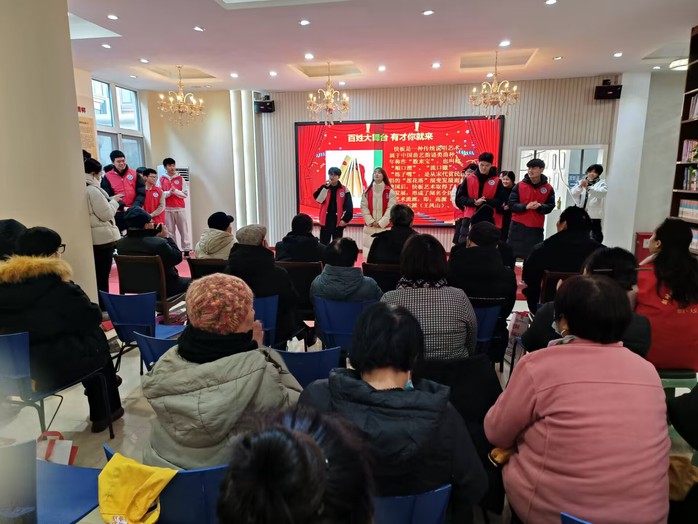 2023�12�25日,汽车与交通安全学院组�30余人的表演队伍到贾汪区新泉社区共同开展庆元旦文艺演出。学院同学带来的舞蹈、快板绕口令和歌曲把整场演出推向了高潮,本次活动同时还促进了我院与地方社区的交流,丰富了社区居民的文化生活,锻炼了我院青年的表演和组织能力�
