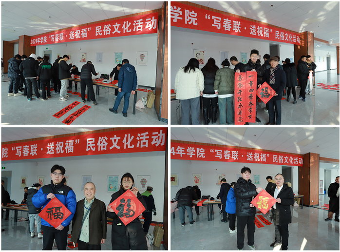 一纸墨香承载民族的文化自信,一副春联带去学院的美好祝福。为深入学习贯彻习近平文化思想,大力弘扬中华优秀传统文化�1�11日,学院关工委、工会面向师生联合举办“写春联·送祝福”民俗文化活动,一同迎接农历新年的到来�