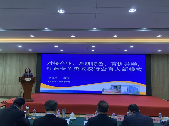 李桂萍院长代表我院在会议上作“对接产业,深耕特色,育训并举,打造安全类政教行企育人新模式”专题报告,介绍了我院的基本情况、近年来取得的主要成绩、对接安全应急产业,做强安全特色,强化安全人才培养和育训并举方面的经验做法。全体参会人员聆听了会议专家报告,参加了各专委会的专题会议和研讨交流,实地参观了广西工业职业技术学院安全实训教学基地�