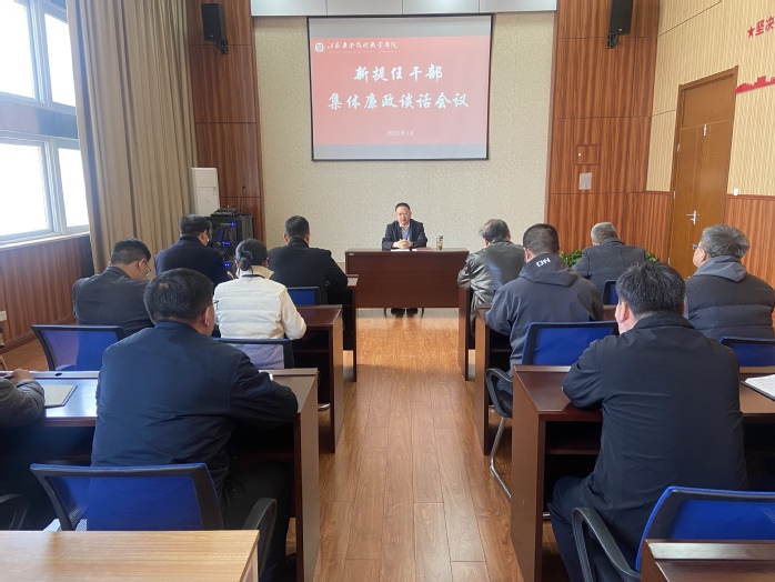 为教育引导新提任干部提高政治站位、强化责任担当、恪守廉洁底线,3?5日,学院纪委召开2023年新提任干部集体廉政谈话会议,学院党委委员、纪委书记、派驻监察专员朱伟军出席会议并讲话,2023年第二批、第三批新提任的20名中层干部参加会议?/p>