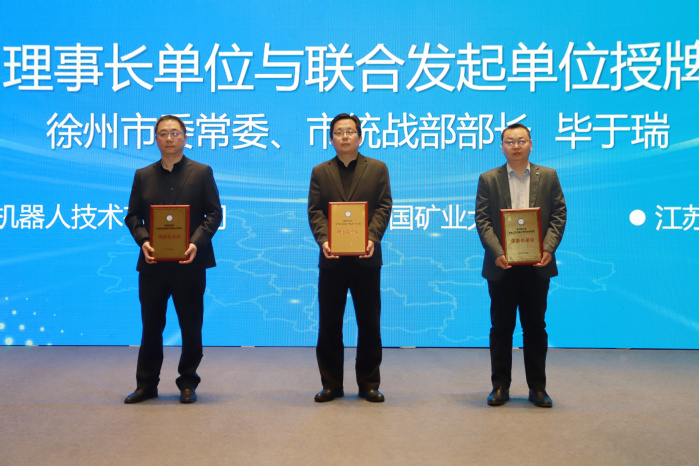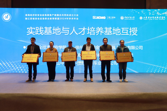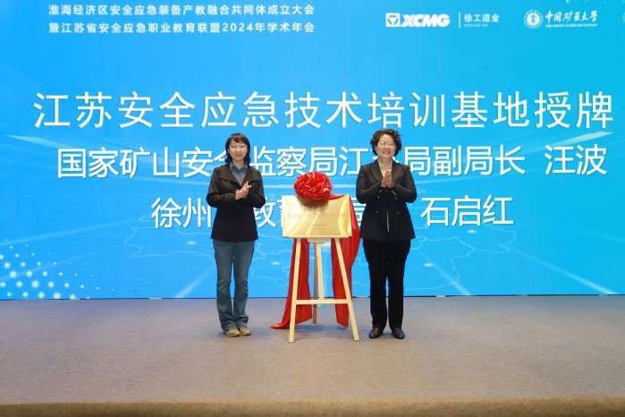 授牌仪式上,与会领导为理事长单位与联合发起单位�副理事长单位授牌,企业实践基地与学校人才培养基地进行相互授牌。徐州市应急管理局、徐州高新技术产业开发区、徐州市教育局分别为我院授“应急管理人才培养基地”、“安全应急装备人才培养基地”、“淮海经济区中小学安全体验教育中心”。汪波和石启红共同为�江苏安全应急技术培训基�”揭牌�
