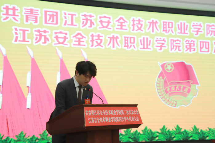 当日下午,大会圆满完成各项议程,党委委员、组织部部长佟廷友致闭幕词�大会选举并产生了第二届共青团江苏安全技术职业学院委员会和江苏安全技术职业学院第四届学生委员会�在庄严的《国际歌》中,大会胜利闭幕�