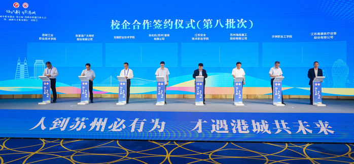 今年是张家港市举办的第五届校政企联盟合作大会,通过此平台我院同张家港市部分重点企业开展了对接合作,已有近80名毕业生来张家港实习就业。本次大会现场,魏勇代表学院同苏州海陆重工股份有限公司校企合作签约,双方将就专业人才培养和输送建立合作关系?/span>