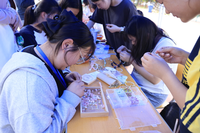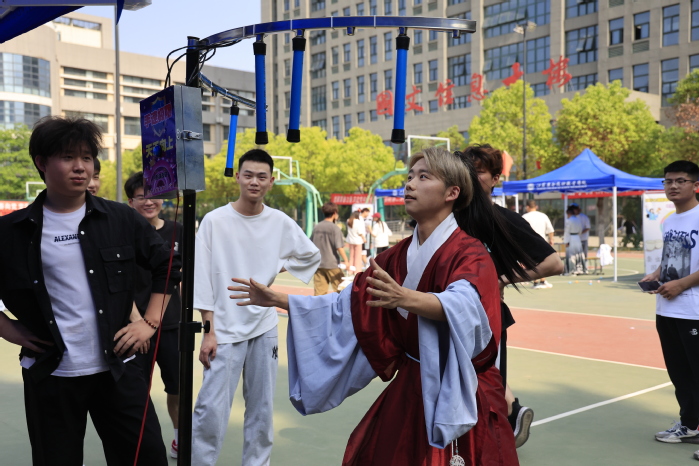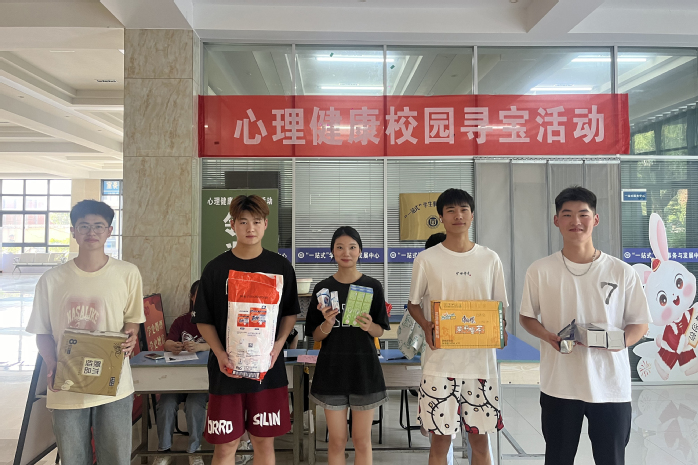 此次活动以互动式、体验式、浸润式的活动形式,融合“文化育人”“自我探索”“心灵疗愈”“情绪管理”四个主题,组织?6项心理活动,如香囊制作、书写明信片、水拓漆扇、DIY手工、眼疾手快、抖落烦恼等,师生共同参与,踊跃表达、释放压力、疗愈自我、共获成长。学院啦啦操社团、舞龙社囀汉服社团进行了现场表演。同日,贾汪校区开展了“校园寻宝”活动,让同学们走近校园、自主探紀悦纳自我?/p>
