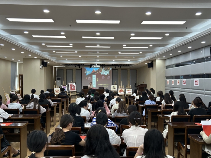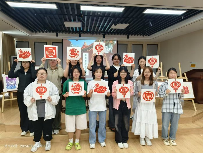 讲座现场,徐杰老师以其深厚的剪纸技艺和丰富的教学经验,为学生们带来了一场生动的剪纸艺术展示。她详细介绍了剪纸艺术的起源、发展及特点,并现场演示了剪纸的基本技法和创作过程�