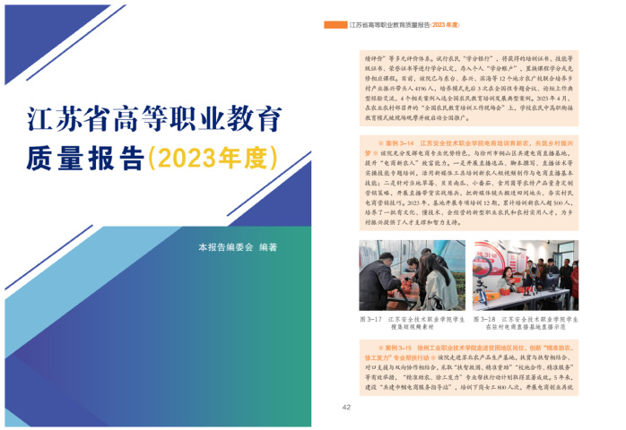 近日,学院申报的优秀案例“电商培训育新农,共筑乡村振兴梦”成功入选《江苏省高等职业教育质量年度报告�2023年度)》�