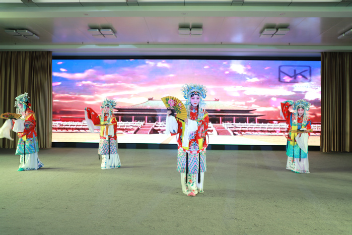 活动中,来自徐州市戏剧家协会、徐州市京剧票友工作委员会、徐州古彭京剧社?/span>40余名演员为我院师生呈现了一场极富民族文化特色的文化盛宴。经典京剧曲牌《贵妃醉酒》选段,演员服饰华丽,表演细致入微,声音清脆响亮,唱腔悠扬动听,每一个动作,每一个眼神,都精准到位,尽显国粹之绝妙,赢得了现场观众的阵阵掌声。现代红色京剧《军民鱼水情》《龙江颂》《光辉照儿永向前》《箭杆河边》《红灯记》《白毛女》《海港》《红色娘子军》《华子良》等选段,演员们用耳熟能详的故事、激烈的情节冲突、细腻的人物形象,回顾了革命年代先辈英勇奋斗的动人故事,以及党带领人民进行社会主义建设取得的伟大成就。整场演出气氛热烈,掌声不断?/span>