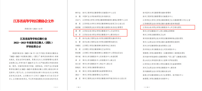 学院后勤服务中心将推优工作作为鼓舞教职工士气、激励全中心团结奋进的重要举措,积极组织校内申报和评审,为广大后勤一线职工搭建个人出彩的舞台。经学院推举、协会评审,我院2名个人和1支团队入选。展辉、赵芳等2名同志被评为江苏省高等学校后勤行?/span>2022-2023年度?/span>最美后勤人?/span>,郑友亮、冷晴晴带领的环卫绿化班组被评为?/span>最美后勤团?/span>?/span>?/span>