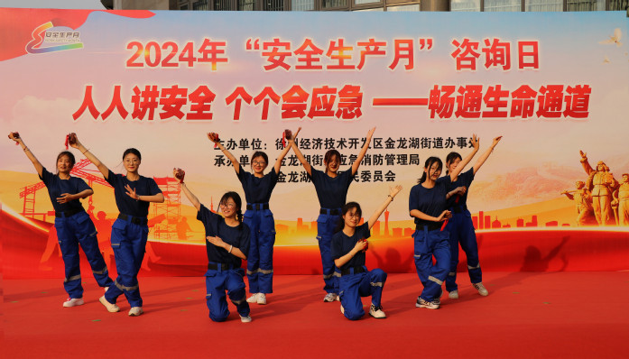 当日下午,工业安全与职业健康学院的志愿者走进徐州市经开区金龙湖街道办事处,通过安全知识宣讲、快板《说安全》等形式向市民群众讲解安全防范知识以及安全生产问题?/span>