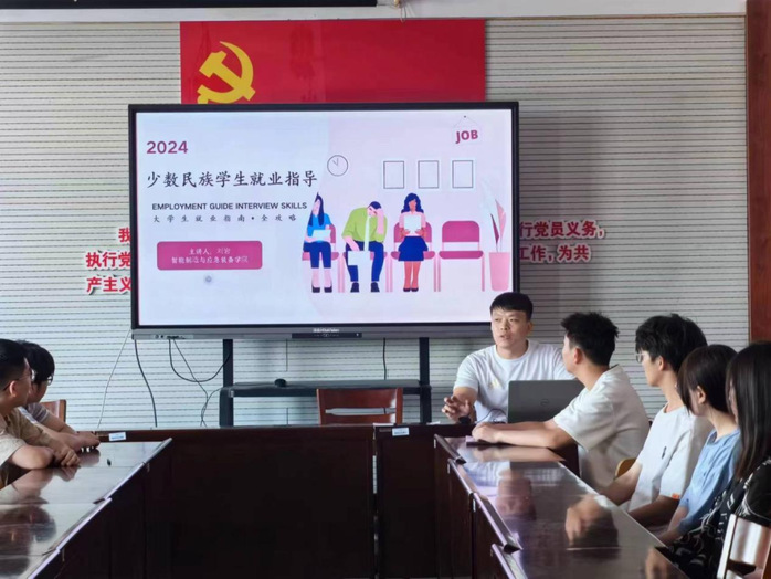 6�11日,在两校区举办了少数民族学生就业指导讲座。内容涵盖了树立正确的就业择业观、简历制作、就业过程中可能遇到的问题及应对策略、求职技巧、典型案例等多个方面,旨在帮助少数民族学生们更好地准备就业,迎接职场挑战。为全校159名少数民族学生(含新疆班)安排了实习就业“一对一”结对导师,为少数民族学生提供精准就业指导�