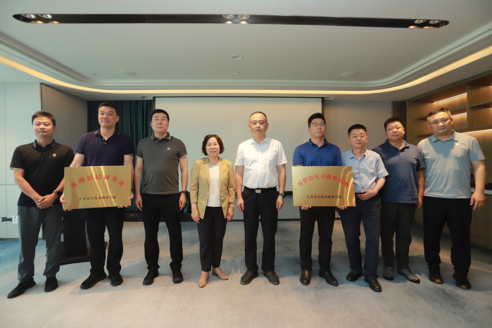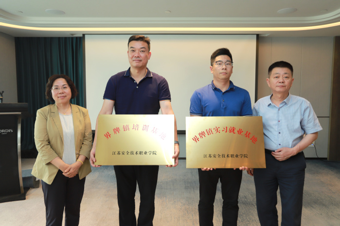 在与会领导的见证下,李桂萍和魏勇代表学院向界牌镇授“江苏安全技术职业学院界牌镇培训基地”“江苏安全技术职业学院界牌镇实习就业基地”�