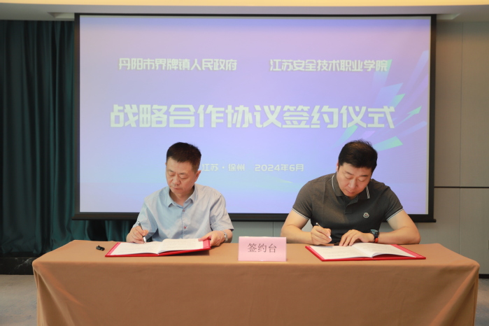 6�28日,学院与丹阳市界牌镇人民政府举行校地战略合作签约仪式,并举�2024年丹阳市界牌镇企业法人安全生产管理能力提升培训班开班仪式。学院院长李桂萍、副院长魏勇,丹阳市界牌镇党委书记刘奇、副书记范萌、副镇长王黎军、副镇长彭愉等领导出席仪式,本期培训班全体学员参加仪式�